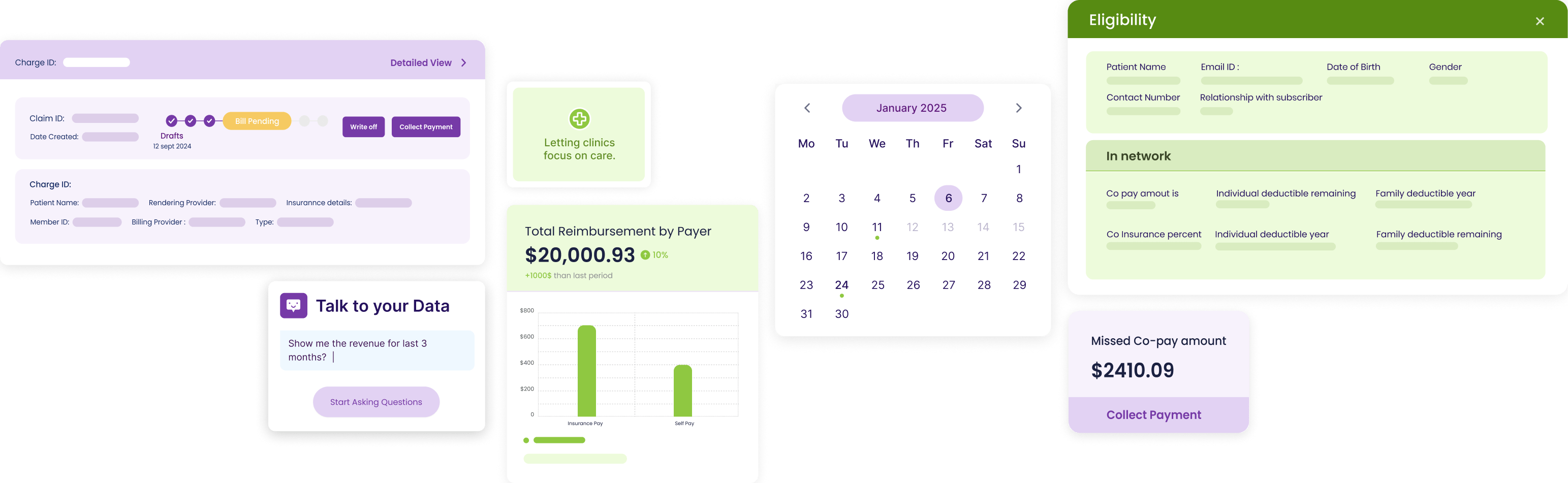 Automate every step from intake to payment so owners grow profit, billers slash denials, and clinicians finish notes in minutes.